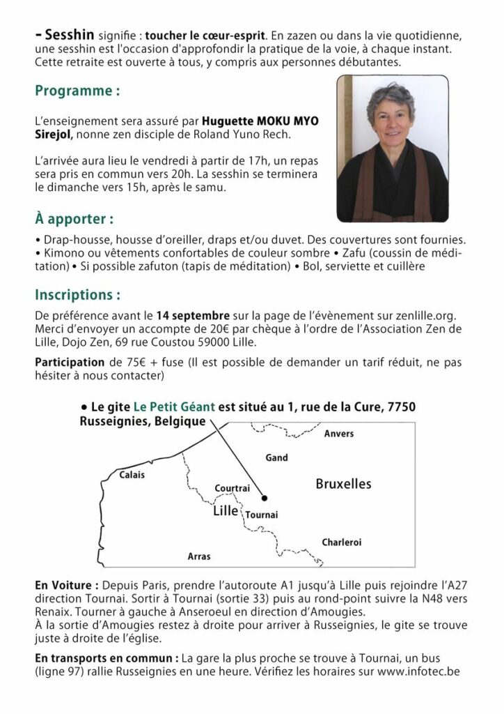 Les 24 et 25 septembre 2022 aura lieu la sesshin annuelle du Dojo Zen de Lille.